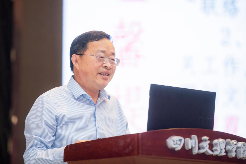 达州市委教育工委书记,市教育局党委书记、局长邓剑,北京师范大学京师特聘教授、博士生导师温静教授,通川区教育局局长郭海龙,达川区教育局局长谯小波,学校党委书记黄涛教授、校长侯忠明教授、党委副书记朱兴华教授、副校长徐晓宗教授出席会议。共同体成员单位,学校相关职能部门、学院教师齐聚一堂,共同探讨如何更好推进中小学思政课一体化建设。会议由市委教育工委专职副书记、市教育局党委委员冯雷主持。