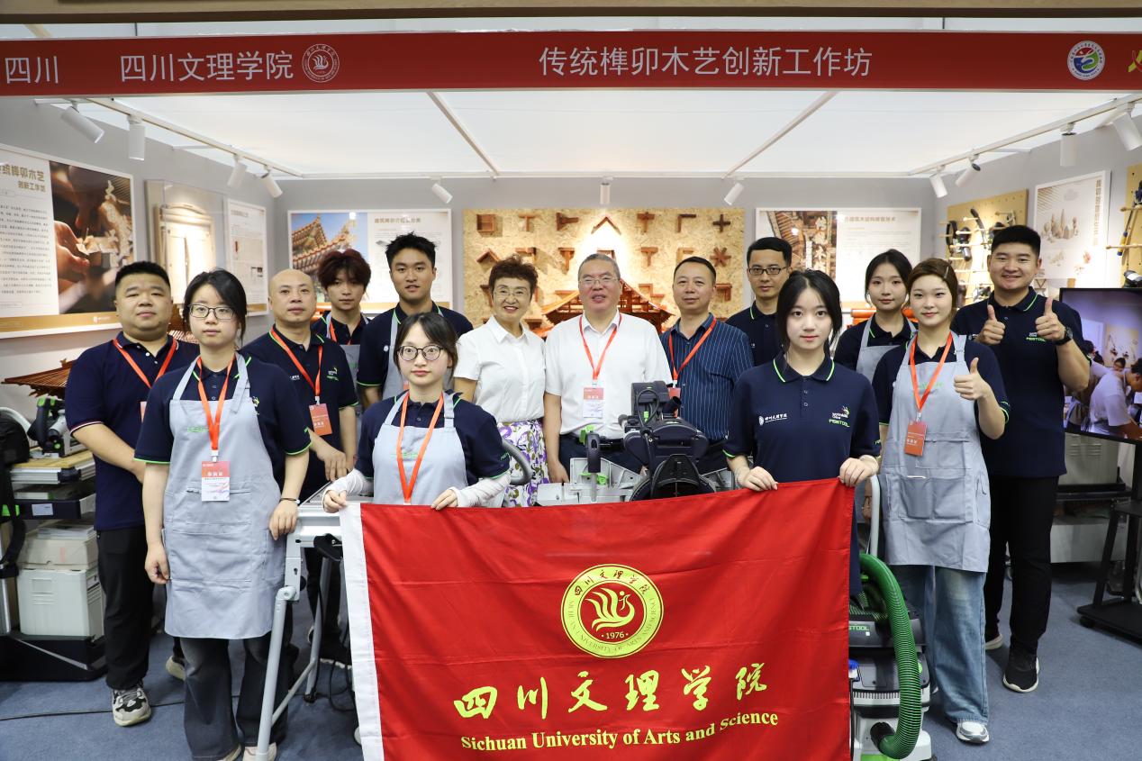 《传统榫卯木艺创新工作坊》与来自全国其他高校的57个大学生艺术实践工作坊作品在襄阳全民体育运动中心现场展出,工作坊依托学校省级一流本科专业美术学重点培育,利用美术学院木工实训室设备资源,与校企合作单位建立“产、学、研、用”一体化平台,致力于传统榫卯木作的修复与保护,推动传统工艺与自动化工具的当代革新,倡导可持续化设计与制作方式,呈现木艺实训实践教学成果和产出导向。工作坊围绕思维创新、工具创新、工艺创新为核心,形成一条文化挖掘、融合技术、修复保护、产出导向的木艺融合创新发展之路。是学校立足达州产业、扎根川东地域、深挖榫卯木艺文化遗产、开展艺术与生活融合的探索及实践缩影。