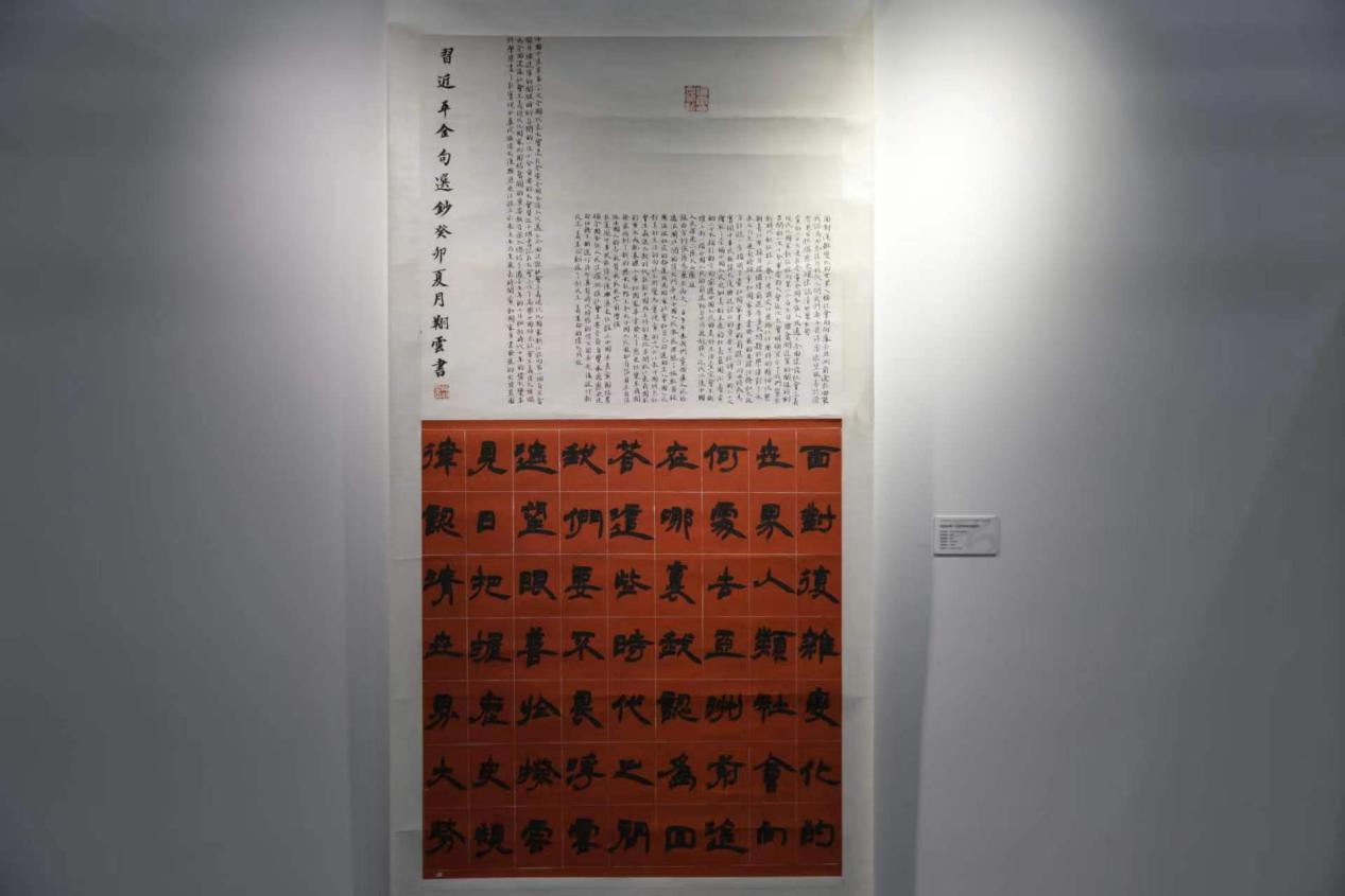 书法、篆刻作品《习近平金句选抄》内容选自习近平总书记在党的二十大报告中的讲话,风格取法清代赵之谦隶书,其风格雄浑奇崛,碑帖结合是其最大的特点,横、竖、撇、捺等都掺以楷法,用笔流畅,结体匀称,显得生动活泼,神采巧丽。字形的方扁取横势,很多笔画对称的展开,撇捺的组合犹如“雁展双翅,俯仰势增强”,又辅以汉隶笔法,掺篆意,结构赋以动感,多姿态从而避免雷同。