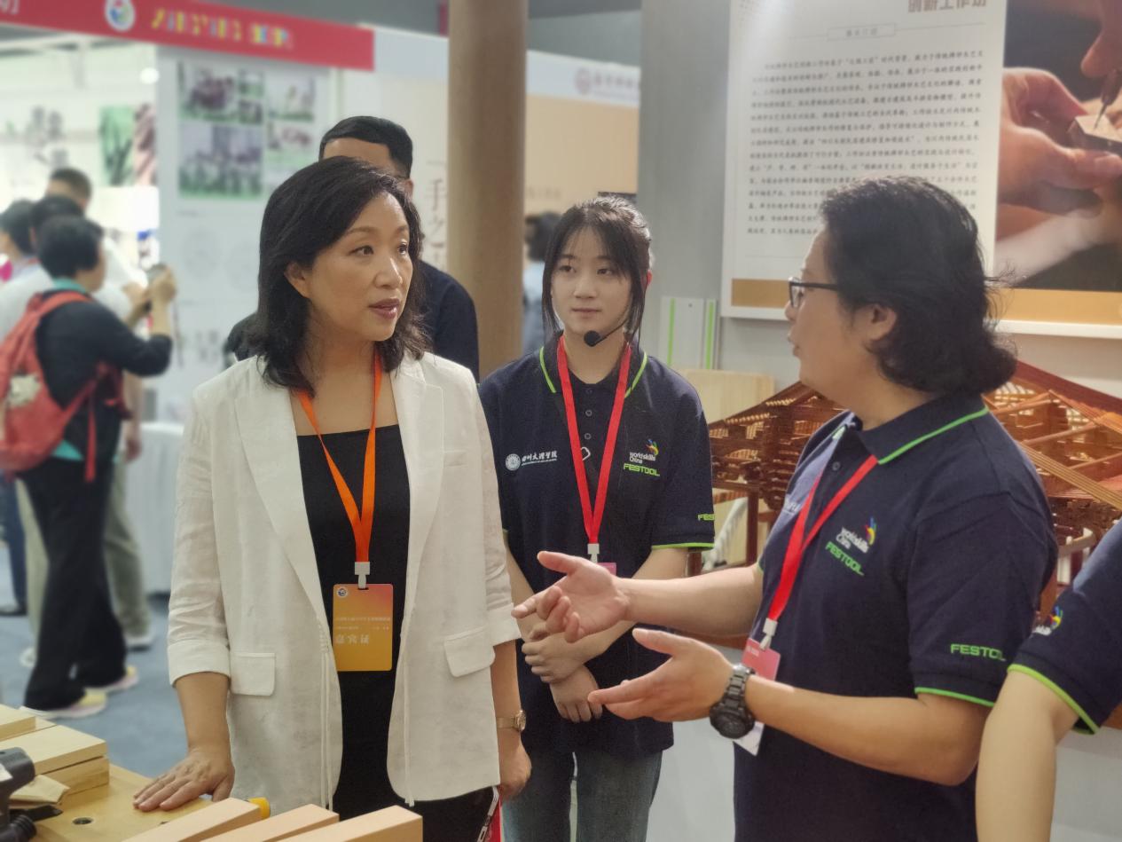 四川省教育厅副厅长蔡光洁参观传统榫卯木艺创新工作坊