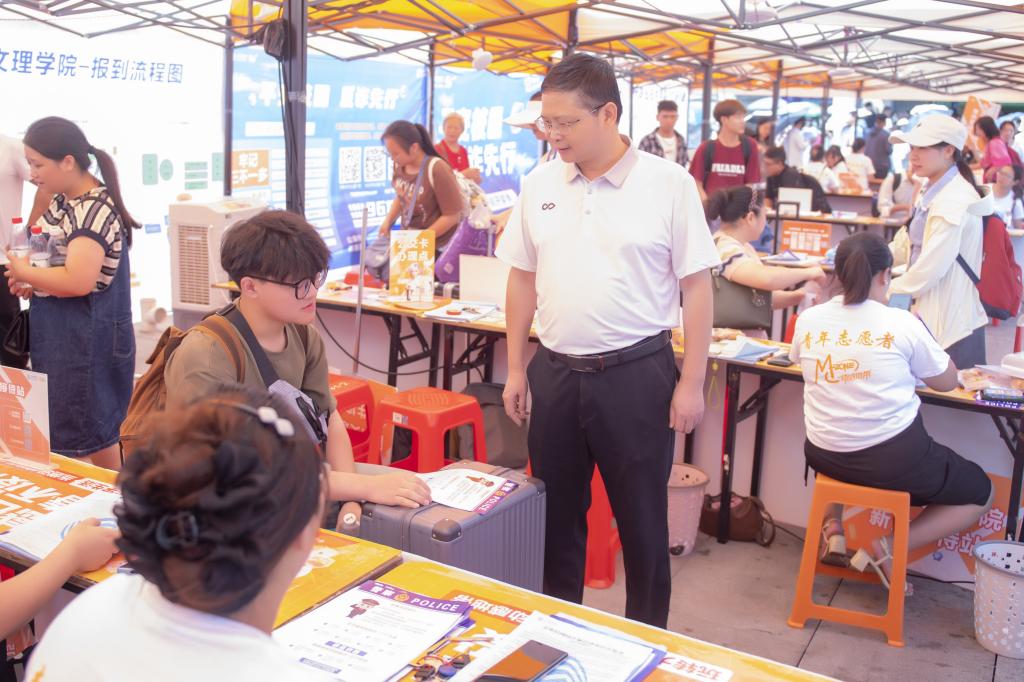 学校高度重视迎新工作,为确保迎新工作顺利进行,统筹谋划,精心组织,营造安全凉快、温馨和谐的新生入学报到氛围,给新生提供更贴心、更安心、更放心的服务。迎新现场,学校党委书记黄涛,校长侯忠明、副校长徐晓宗、程碧英等校领导,到各报到点现场指导工作,了解二级学院报到开展情况,看望慰问参与迎新的师生员工,并与新生、家长亲切交流,对他们的到来表示热烈欢迎,勉励报到新生要刻苦学习、快乐生活、强身健体,争取将来进一步深造。