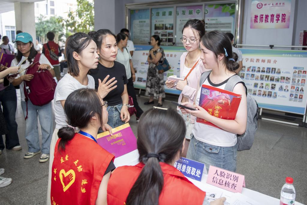 各学院迎新工作人员现场解答新生和家长关于学习、生活等各方面的疑问。校园里处处洋溢着青春的笑脸,迎新现场气氛热烈、秩序井然。