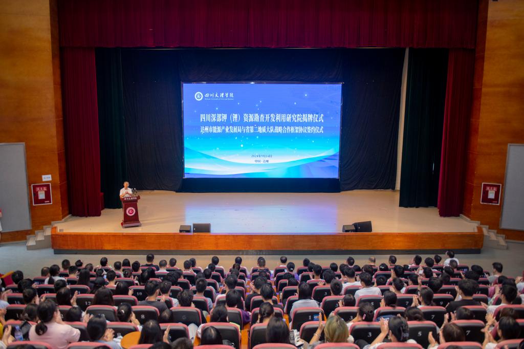 9月14日上午,四川深部钾(锂)资源勘查开发利用研究院揭牌仪式暨达州市能源产业发展局与省第二地质大队战略合作框架协议签约仪式在莲湖校区艺术传媒大楼多功能厅举行。