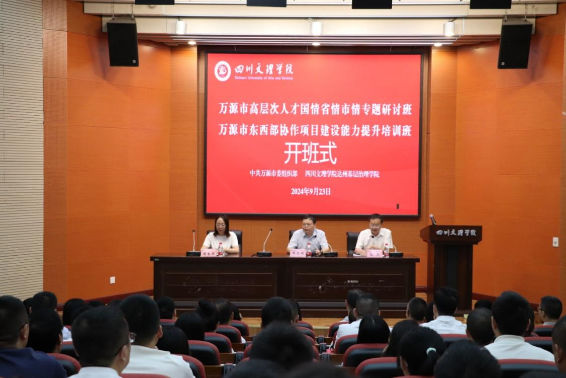 9月23日,万源市高层次人才国情省情市情专题研讨班、东西部协作项目建设能力提升培训班在开元官网莲湖校区同时开班。学校校长、达州基层治理学院院长侯忠明出席开班仪式,马克思主义学院院长、达州基层治理学院副院长孙杰主持开班仪式。