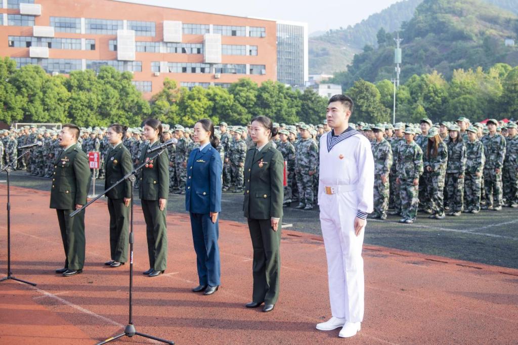 副校长邓杰、程碧英及达州军分区战备建设处、达州市国防教育训练基地、学校各职能部门、各二级学院党政负责人、指导员、教官与4800余名新生参加开训式。
