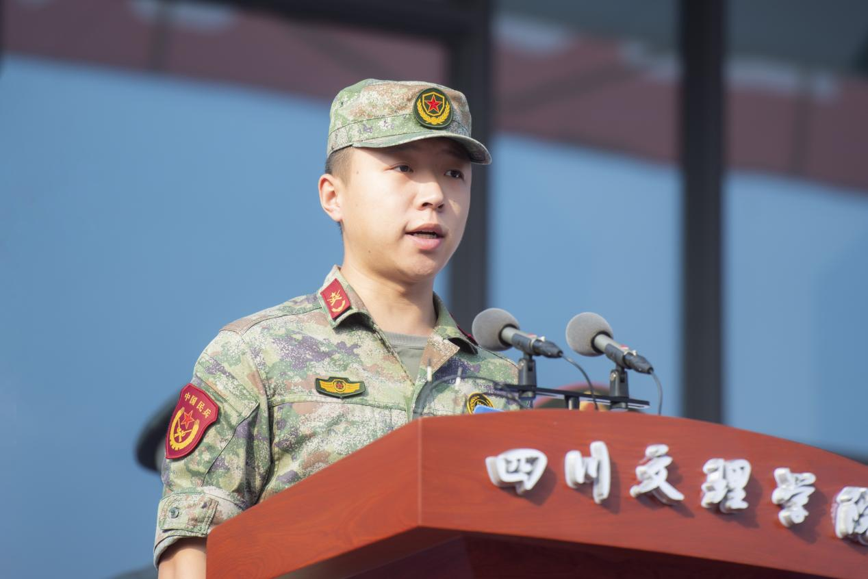 教官代表张鹏表示将全力支持学校军训工作,与青年大学生共同进步,共筑梦想。