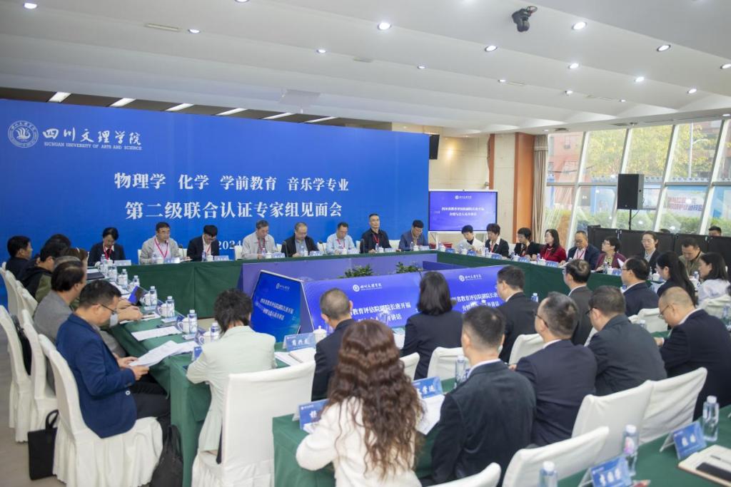 10月28日,开元官网物理学、化学、学前教育、音乐学4个专业第二级联合认证专家组见面会在弘德楼一楼会议室召开。教育部认证专家组全体成员、四川省教育评估院领导、学校党政领导班子、相关职能部门负责人、认证专业所属学院党政班子成员、专业负责人及教师代表参加会议。会议由联合认证专家组组长、湖南师范大学原副校长黎大志教授主持。