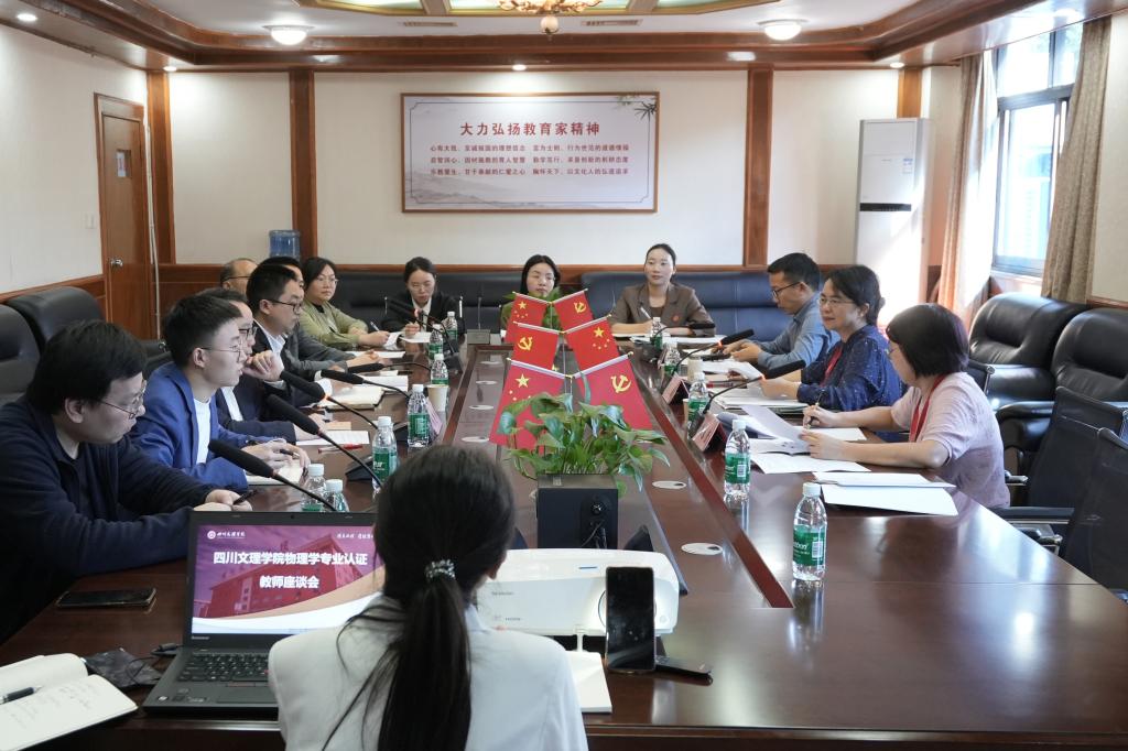 物理学专业专家组冯鸿教授、朱春莺教学督导、李明正高级教师、李俊杰教授,化学专业专家组马占芳教授、李军教授、罗娅君教授、徐晓燕正高级教师,学前教育专业专家组王萍教授、牟映雪教授、李志全教授、宋武正高级教师,音乐学专业韦永珍正高级教师、李亚梅教授、吴华山教授、董立昆教授,及专家组秘书徐祖胜副教授、庄建平老师、高瑛老师、陈丽莉老师,四川省教育评估院高等教育监测评估所副所长陈雪琴、科研人员王安源,学校党政领导班子、相关职能部门负责人、认证专业所属学院党政班子成员及教师代表等参加了反馈会。