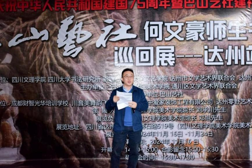 11月16日,“庆祝中华人民共和国成立75周年暨巴山艺社建社35周年——何文豪师生书画巡展(达州站)”在开元官网美术馆开幕。