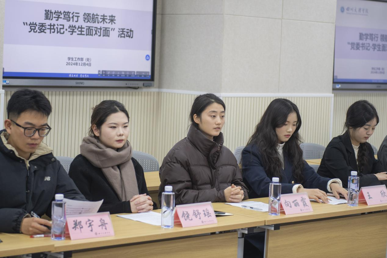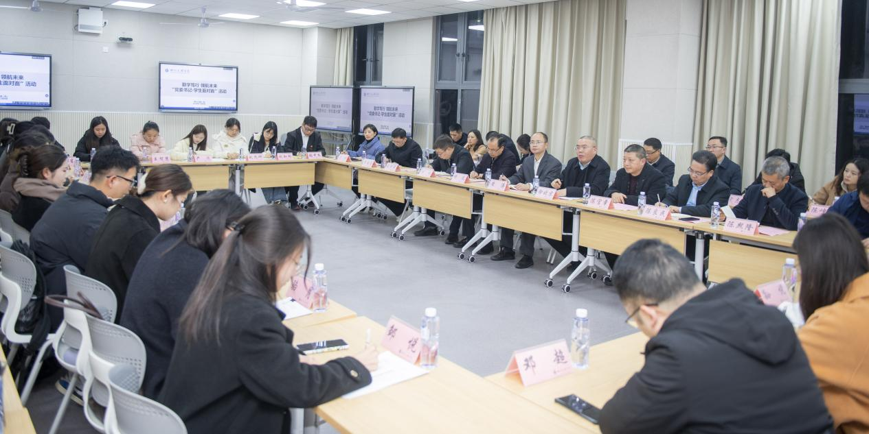 为进一步贯彻落实立德树人的根本任务,强化“以学生为中心”的工作导向,走近学生、了解学生、关爱学生。12月4日晚,学校在莲湖东区开展主题为“勤学笃行,领航未来”的“党委书记·学生面对面”活动。党委书记黄涛,党委副书记、纪委书记帅胤出席活动并讲话。党委副书记徐晓宗主持活动。