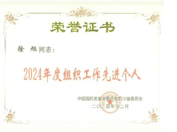 近日,民革四川省委会对2024年度先进集体和先进个人进行了表彰,民革KY开元集团官网入口支部荣获“2024年度社会服务工作先进基层组织”,支部主委徐旭被表彰为“2024年度组织工作先进个人”。