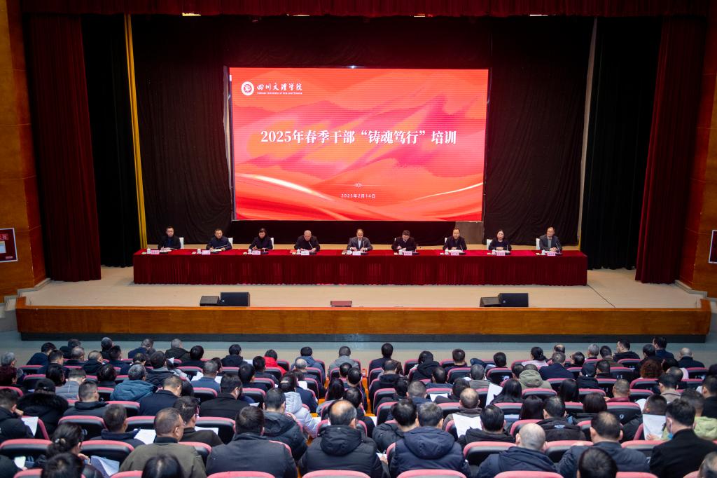 为聚力落实学校第二次党代会精神,提升干部队伍综合素质和能力,为申硕攻坚提供坚强的干部人才保障,2月14日至15日,学校举行2025年春季干部“铸魂笃行”培训。培训邀请了西南财经大学教授廖宏斌、电子科技大学教授程洪、四川省纪委监委第一纪检监察室副主任敏兴国作专题报告。党委书记黄涛作培训开班式讲话,全体校领导出席培训会。