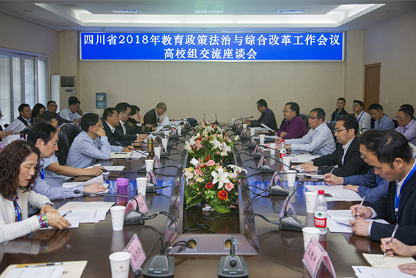 4月9日,四川省2018年教育政策法治与综合改革工作会议高校组交流座谈会在开元官网举行。省委教育工委委员、省教育厅副厅长张澜涛出席会议并讲话。校长刁永锋致欢迎词,省教育厅法规综合改革处处长陈胜主持会议。