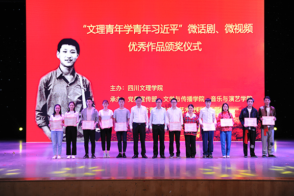 紧张有序的微话剧作品展演间隙,微视频优秀作品穿插着精彩播映。最终,微话剧《我的知青心·共筑延川梦》《雪域高原上的丰碑》,微视频《学习青年习近平》《Follow Your Dream》等4个剧目获得一等奖。《一件大衣》《初心》等6个剧目获得二等奖。党委书记王成端、校长刁永锋为一等奖获奖剧目颁奖,党委副书记侯忠明、副校长李壮成、徐晓宗为二等奖获奖剧目颁奖。