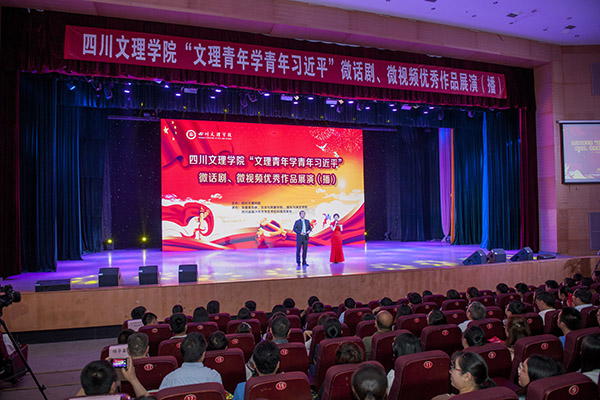 激动人心的暖场视频之后,党委书记王成端发表主旨讲话。他简要回顾了学校自2017年9月开展“文理青年学青年习近平”教育实践活动以来的工作情况。指出,开展“文理青年学青年习近平”教育实践活动是学校创新思想政治教育活动载体,构建学校“322”大思政工作体系的重要内容,学校加强对教育实践活动的领导,为全校青年师生赠阅《习近平的七年知青岁月》读本,多形式开展理论学习活动,将青年习近平的优秀精神品质融入教材、融入课堂、融入师生头脑,积极引导青年师生树立坚定的理想信念;充分发挥以文化人以文育人的重要功能,将青年习近平的优秀精神品质融入主题班会、党(团)日活动、品(朗)读会、演讲比赛等文化活动,引导青年师生践行青年习近平的为民情怀和奋斗精神;积极整合校内外各级各类宣传阵地,宣传青年习近平的优秀精神品质,官方微信、微博、易班等组织专题讨论,开展线上线下互动学习交流,有效激发了文理青年学青年习近平优秀精神品质的热情。“中青在线”、教育导报、四川教育网等校外媒体对学校教育实践活动进行了多角度宣传报道,产生了广泛影响。
