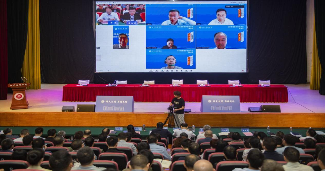 黎大志代表专家组就预评估总体情况进行反馈。他指出,专家组依据审核评估标准,全面审核了《自评报告》等材料,通过线上听课、访谈座谈、调阅材料等方式,对学校本科教育教学工作进行了全面考查。专家组认为,学校领导重视、教师投入、学生好学以及管理规范,给专家组留下了深刻印象。一是学校党委始终坚持以习近平新时代中国特色社会主义思想,统领教学工作,践行为党育人、为国育才的初心使命,全面贯彻党的教育方针,落实立德树人根本任务,提出建设特色鲜明、优势突出的高水平应用型大学建设目标,确实把党的领导贯穿办学治校各领域、教育教学各环节、人才培养全过程。学校党委充分认识教育的政治属性、人民属性和战略属性,采取有效措施,较好地保证和巩固了人才培养的中心地位和本科教育教学的核心地位。学校推进实施新时代红色文化育人工程,构建全员、全过程、全方位红色文化育人体系,努力培养扎根革命老区、扎根基层的两扎根人才,成效明显。二是学校人才培养办学思路明确,培养目标定位准确,积极探索知识结构模块化、理论实践融合化、教学服务信息化、考核评价多元化的人才培养模式改革,按照OBE的教育理念系统修订人才培养方案、课程教学大纲、课程目标达成评价办法。三是学校坚持人才强校战略,对标本科教育教学审核评估、专业认证和硕士点建设标准,以塔石人才工程为抓手,教师队伍得到全面加强。四是重视本科教学资源条件建设,在办学经费总量有限的条件下,本科教学投入稳步增加,生均教学日常运行支出比例投入高于四川省常模指标。五是学校坚持学生中心、产出导向,持续改进教育理念,独立设置质量管理机构,构建决策组织系统、教学运行系统、条件支持系统、质量监控系统的“四位一体”教学质量保障体系,以师范认证、高等教育教学评估监测为抓手,建立评价-反馈-改进的内外双循环机制,初步形成了持续改进。他还代表专家组对学校教育理念、服务地方、人才培养、师资队伍和教学质量监控等方面提出了改进建议。