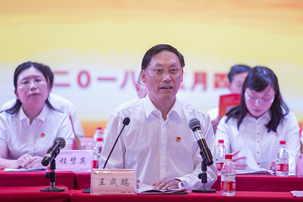 王成端寄语全校青年学生:一是要厚德笃行,不断提高政治觉悟和品德修养。新时代的青年学生应加强自我品行修养,要坚持用习近平新时代中国特色社会主义思想为指引,要把学习贯彻党的十九大会议精神和习总书记系列重要讲话精神作为重要内容,树立崇高的理想信念、强烈的使命担当、深厚的爱国情怀,勇做时代先锋,为祖国繁荣富强开拓奋进、锐意创新。二是要精钻学业,不断增强学习能力和业务本领。静心学习、刻苦钻研、加强磨炼,求得真学问、练就真本领,努力成为可堪大用、能担重任的栋梁之材。三是要不忘初心,做永远听党话跟党走的新青年。习近平总书记在北京大学师生座谈会和纪念马克思诞辰200周年大会上的讲话,充分体现了党中央对当代青年的充分信任和殷切期望。广大文理青年要牢记总书记的嘱托,紧跟时代步伐,砥砺前行,不断修炼内功、完善自我,切实担当起党和人民所赋予的伟大历史重任。