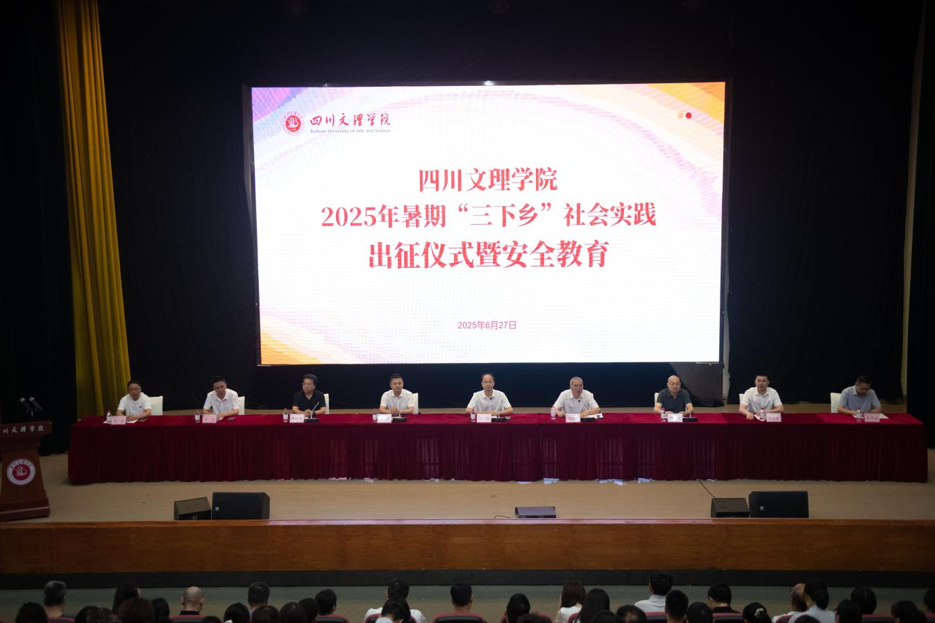 6月27日上午,开元官网在莲湖校区多功能厅举行2025年暑期“三下乡”社会实践出征仪式暨安全教育大会。学校党委书记黄涛出席并讲话,党委副书记徐晓宗主持。