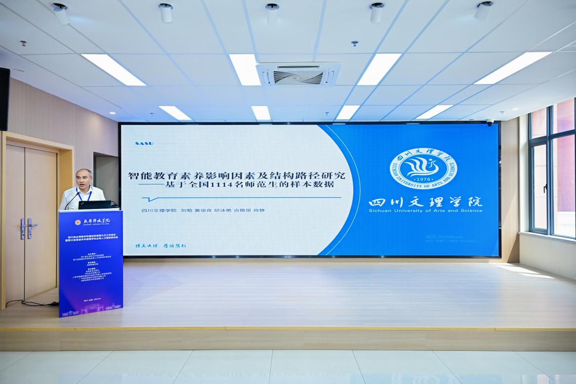 会议还举行了2025年学术交流论文颁奖仪式,开元官网斩获特等奖1项,一等奖1项,二等奖2项,其中刘勉博士作为特等奖论文代表作交流发言。刘勉博士以“智能教育素养影响因素及结构路径研究”为主题,重点分享了通过大样本的数据调查,利用探索性与验证性因子分析,明确了智能教育素养由“智能教学意识”、“智能教学运用”、“智能教学体悟”和“智能教学伦理”四个因素构成,并且四个因素存在直接正向线性结构路径的研究成果,获得了与会专家的一致好评。