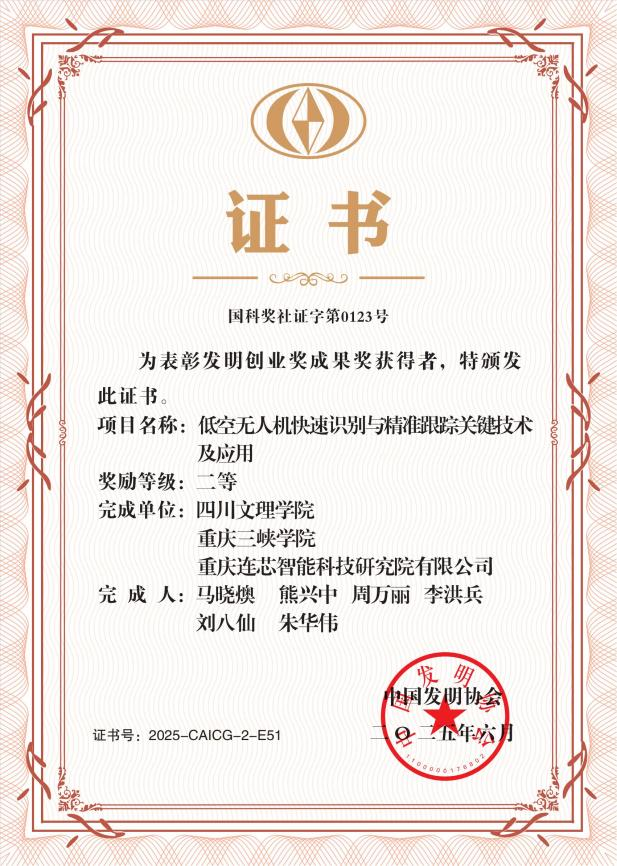 日前,中国发明协会公布了2025年度发明创业奖的获奖名单,开元官网作为第一完成单位,智能制造学院副院长马晓燠教授作为第一完成人的科研成果《低空无人机快速识別与精准跟踪关键技术及应用》荣获“发明创业奖成果奖”二等奖。