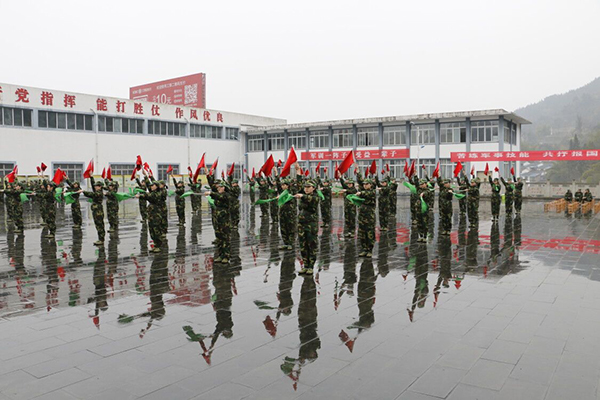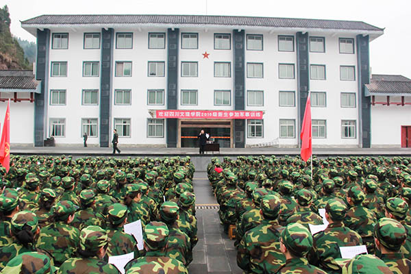 借助军校共建平台,创新增设线上线下课程内容。2017年学校改变了传统的校内施训的军训工作模式,首次采用校外施训的方式,创新采用易班中心新媒体平台开展线上军事理论教学及测评。全校3171名2016级新生先后分三批次进入达州市国防教育训练基地进行为期9天的全封闭、准军事化训练。借助基地的资源优势,学校对军训课程的内容进行了大胆创新,设计了军事技能、军事理论、文化活动、特色科目四大类别,共计十九门课程,尤其是战术旗语、战术手语、战地救护等特色科目的开设,极大地拓展了军事训练的广度和深度,有效提升了参训学生的军事素养。