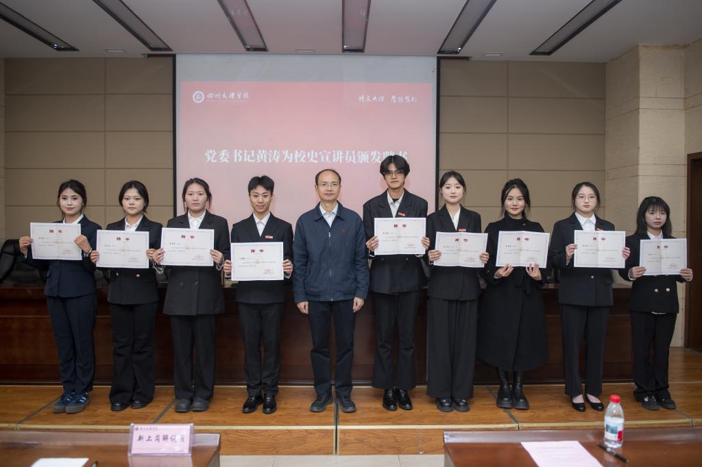 授课前,黄涛还为学校第九批校史宣讲员颁发了聘书。