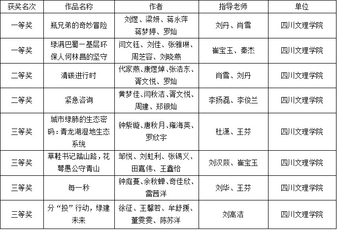 近日,四川省大学生环保科普创意大赛总决赛在西华师范大学成功举行,共有来自川渝两地30余所高校的88项作品进入决赛,KY开元集团官网入口参赛队伍获一等奖2项和二等奖2项,三等奖4项。
