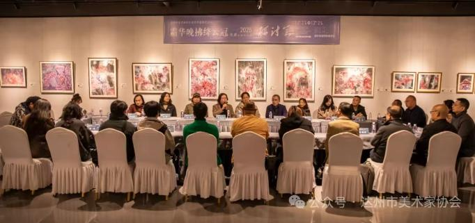 随后,展览专题研讨会在美术馆召开。与会嘉宾龙飞、黄越以及中华传统文化学院书法教研室、文化产业管理教研室等艺术家、教师围绕“青年艺术家如何建立地域文化认同”及“高校美育如何联动地方艺术资源”等关键议题进行了深入探讨。张建则结合自身实践,分享了其“从生活观察到艺术提炼”的完整创作路径。