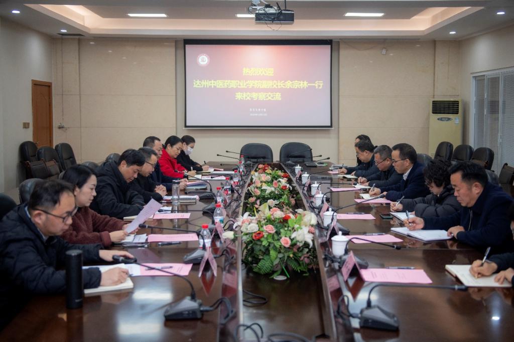 12月12日上午,达州中医药职业学院副校长余宗林带队来校考察交流。学校副校长陈光平主持交流座谈会,学生工作处、国有资产管理处、后勤服务处、教务处、校地合作处、基建处等相关部门负责人参加座谈。双方围绕新校区建设、基础设施配置、信息化建设及运维管理等议题开展深度交流。