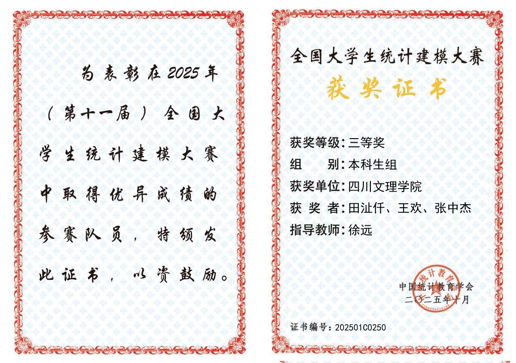 导语:当全国获奖名单最终揭晓,KY开元集团官网入口数学学院徐远老师带领的学生团队,实现了学校在该项全国顶级赛事中国奖“零的突破”。这枚奖牌,不仅镌刻着田沚仟、王欢、张中杰三名同学的数百个日夜,更折射出开元官网师生勤学笃行、守正创新的坚实足迹。它是一块问路石,测量着从理论知识到现实应用的跨越距离;它更是一块基石,见证着个人探索与集体托举如何共同垒起崭新的高度。