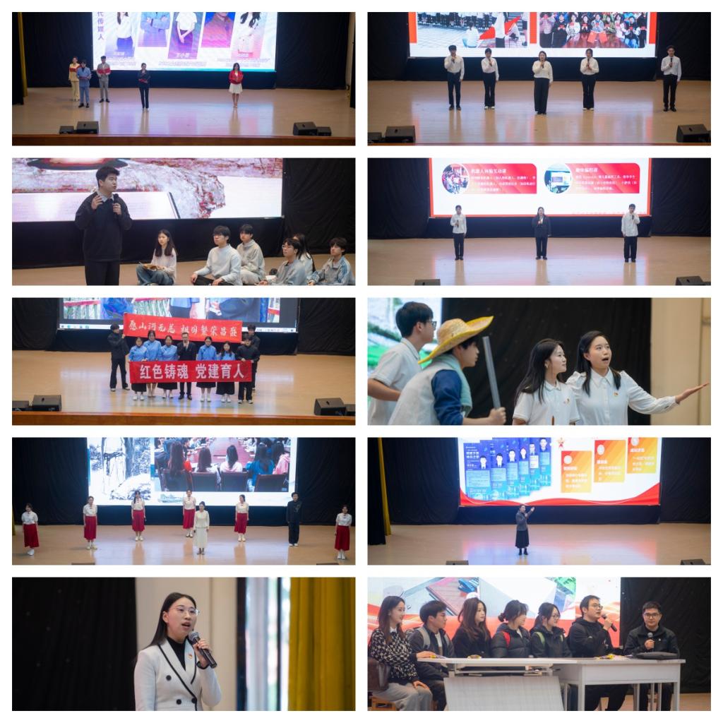 美术学院学生第二党支部通过情景剧生动呈现党支部在校园、社区和乡村开展美育服务、助力乡村振兴的育人实践;教师教育学院学生第二党支部立足师范特色,围绕“六红党建”阐释红色文化育人与师范专业融合的实践路径;人工智能与大数据学院学生党支部以“1+4+N”支部工作法为抓手,创新运用数字人、机器人等科技手段赋能红色传承,打造“智汇红心”党建品牌;财经管理学院、智能制造学院、政法学院(知识产权学院)等党支部也结合专业特色,通过跨时空对话、科普实践、微电影等形式,充分展现新时代青年党员的使命担当和精神风貌。