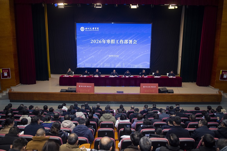 1月23日上午,学校在莲湖校区多功能厅召开2026年寒假工作部署会。党委书记黄涛主持会议并讲话,党委副书记、校长侯忠明部署寒假重点工作。