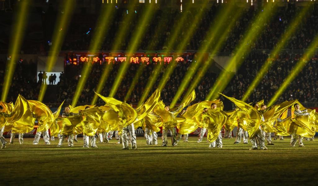 “同学们,辛苦了!今晚的达州,因你们而骄傲!”侯校长温暖而有力的话语,在满是道具和服装的羽毛球馆响起,瞬间驱散了初春的热浪。侯校长指出,以前,我们总说体育的终点是奖牌,但今天,你们将站在川超的舞台上,用艺术诠释体育精神,这是体育与美育最生动的双向奔赴。今天这场开幕式,不仅是一场足球比赛的预热,更是一堂流淌着热血与汗水的场馆里的思政课。你们或许没有在绿茵场上拼抢,但你们的每一个动作、每一次排练,传递的是与绿茵场同频的律动;你们参与的不仅是一场演出,更是构建了一种共情的场域。当你们在舞台上挥袖起舞时,你们展现的是舞蹈之美;当你们与全场同唱《成就你的梦想》时,你们感受的是团结之魂;你们手里的道具,不仅仅是舞台效果,更是一种文化的火炬,当《高腔》即将响起时,是跨越年龄的共鸣;当巴风賨韵即将舞动时,是文化根脉的延续。足球是圆的,代表着包容与无限可能;舞台是方的,象征着规矩与脚踏实地。愿你们在人生这个大舞台上,既要有《成就你梦想》的雄心,也要有《四海同歌》的温度。