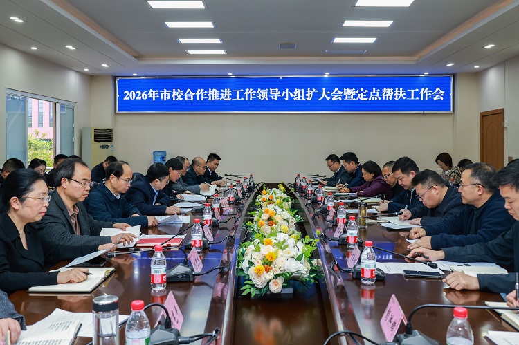 4月3日,学校召开2026年市校合作推进工作领导小组扩大会暨定点帮扶工作会,系统总结过往工作成效,分析当前形势任务,部署全年重点工作。党委书记黄涛出席会议并讲话,党委副书记、校长侯忠明主持会议,全体校领导出席会议。