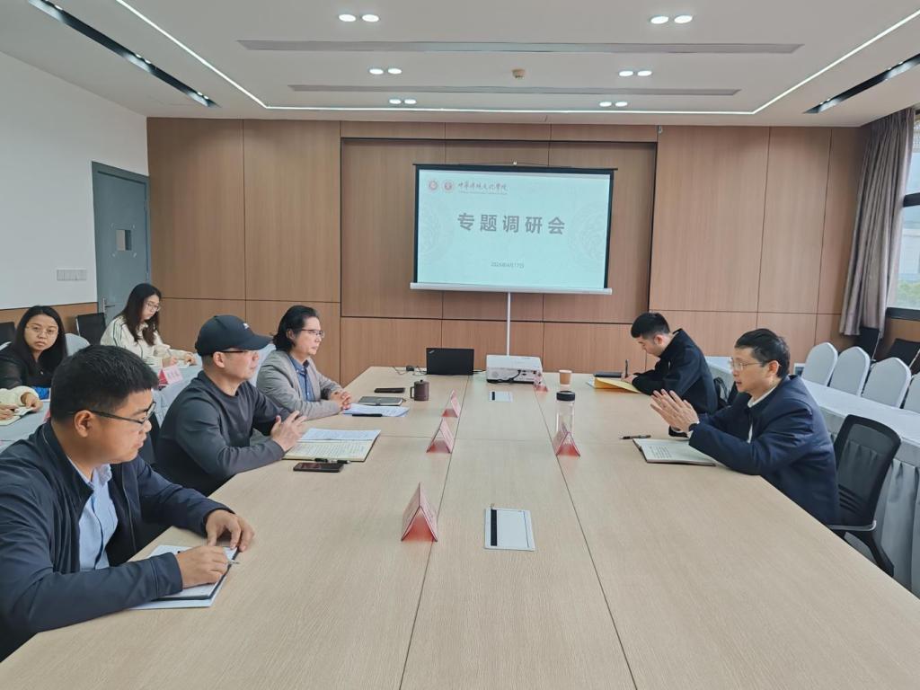 学校党委办公室、校办公室相关负责人陪同调研,中华传统文化学院党政班子、科室负责人和部分管理人员参加调研会。