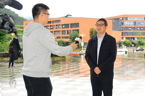 在收看开幕式后,校长刁永锋教授接受了达州电视台采访,他说:习近平同志在党的十九大开幕式上所作的报告,高举中国特色社会主义伟大旗帜,不忘初心,牢记使命,围绕五大发展理念,为中华民族在新的历史起点上实现伟大复兴中国梦描绘了一副壮丽的宏伟蓝图。报告主题鲜明突出、立意高远深邃、内涵深刻丰富、目标明确具体,充分体现了以习近平同志为核心的党中央继往开来的历史使命、开创未来的科学指引、改天换地的伟大实践和心系人民的执政品格。作为植根达州的普通高校,我们要深入学习领会和贯彻实践习总书记在新的历史时期提出的新思想、新观点,牢牢把握社会主义办学方向,把立德树人作为根本任务,加快学校转型发展,创新人才培养模式,提升服务区域经济社会能力,把学校办成特色鲜明、优势突出的高水平应用型大学,为决胜全面建成小康社会、振兴川陕革命老区提供强有力的智力和人才支撑。