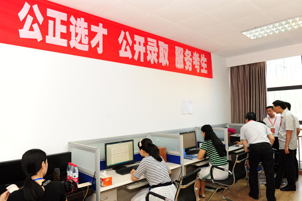 7月25日,党委书记王成端率党委副书记侯忠明、办公室主任涂德祥等深入开元官网2017年招生录取现场看望慰问工作人员,检查指导招生录取工作。