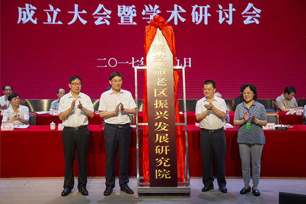 中国老区建设促进会副秘书长刘津远,达州市委常委、宣传部长邓瑜华,学校党委书记王成端,校长刁永锋共同为研究院揭牌。