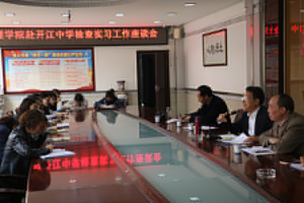 在开江中学,检查组聆听了一堂实习学生的语文汇报课,随后召开实习工作座谈会。开江中学领导和指导教师对实习学生勤勉踏实的工作作风、耐心细致的教育态度和较为高超的教学水平给予以充分肯定,对实习学生的汇报课给予了较高评价;实习学生纷纷发言表达对开江中学提供的优良实习环境、领导和老师的真诚关怀、无私指导的由衷谢意。
