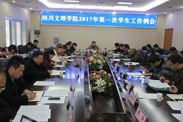 3月2日下午,在2017年第一次学生工作例会上,党委书记王洪辉强调,把大学生思想政治工作做细、做好、做扎实,为学生全面发展、健康成才打下坚实基础。他指出,大学生思想政治教育工作已进入新的发展阶段,要明确新形势新任务,增强做好大学生思想政治教育工作的责任感和使命感。他要求全体学工干部要认真贯彻落实全国高校思政工作会议精神,认真研读《关于加强和改进新形势下高校思想政治工作的意见》、新版《普通高等学校学生管理规定》,加强学习,提升能力,扎实推进学校思想政治教育工作;要围绕学校中心工作,聚焦任务,扎实工作,保障学生的安全稳定,把学生工作细细做实。