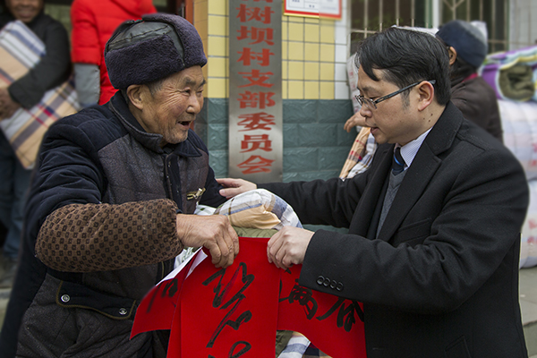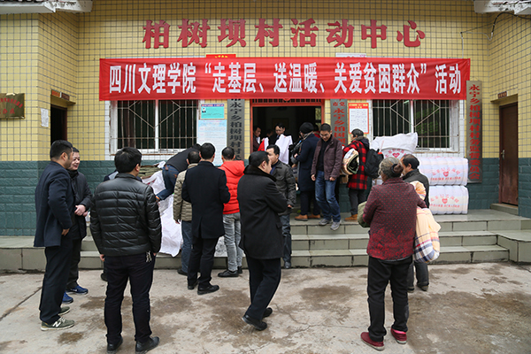 根据四川省委办公厅、省政府办公厅《关于切实做好困难群众安全温暖过冬工作的通知》(川委办发电〔2016〕20号)要求,把棉被、棉大衣迅速送到贫困群众手中,切实保障贫困群众安全温暖过冬。1月17日,学校党委书记王洪辉、党委副书记侯忠明、党委副书记、纪委书记雷超率校地合作处负责人及5位书法专业教师前往开元官网定点帮扶村——万源市永宁乡柏树坝村和茶垭乡老洼坪村开展 “走基层、送温暖,关爱贫困群众”及“文化扶贫——2017 送春联”活动。