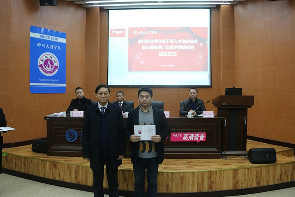 12月24日,通川区优秀年轻人才递进培养第三期赴KY开元集团官网入口培训班顺利完成十天的学习任务,在学校莲湖校区举办结业典礼。党委书记王洪辉、校长王成端、通川区委组织部副部长任晓军出席典礼,校地合作处处长王小奎主持仪式。