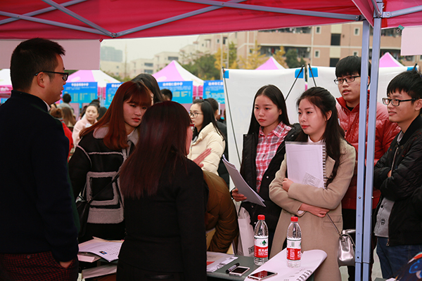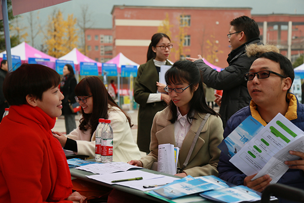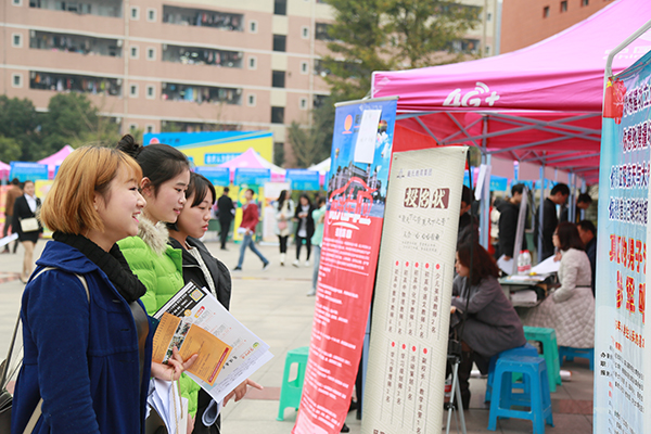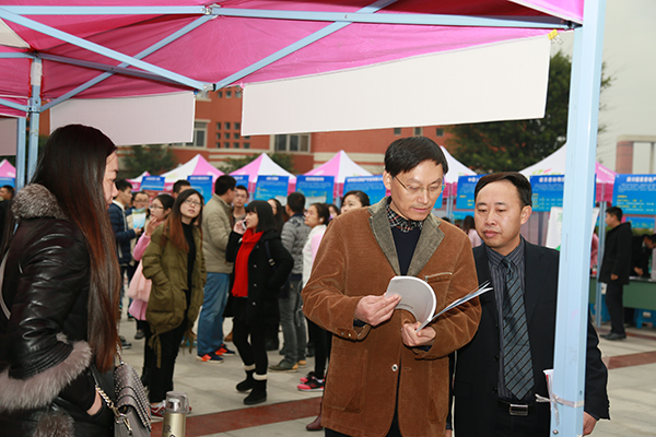 时逢严寒降温天气,双选会现场依旧热闹非凡,173家招聘单位沿着音乐广场一字摆开,人群熙熙攘攘,求职人员依次排队等候面试,场面秩序井然。据统计,开元官网2017届共有50个专业及专业方向的2834名学生即将毕业,参加本次双选会的人员多达三千余人,许多往届毕业生及社会待业人员也专程赶到开元官网参与现场招聘。为了保证毕业生能够找到满意工作,兼顾毕业生工作地域需求,学校特邀四川省内外众多知名企业、用人单位来开元官网招聘。本次参与招聘的单位性质较为多样,既有国有企业、民营企业,又有政府机关、事业单位、学校和培训机构。招聘单位涵盖了制造业、金融业、计算机服务与软件业、教育、医疗、保险等多个行业,招聘岗位涉及教育、工商、管理、机械、化工、建筑工程、营销、设计、金融、保险、商务等众多门类和领域,为毕业生提供了更多的选择机会,充分满足学生多样化需求。双选会现场,求职人员在各个展位上与用人单位认真沟通,仔细了解招聘岗位需求、薪资待遇等信息,并投放简历。不少同学经过深入洽谈已初步确定了就业意向,希望通过进一步的沟通加深了解,最终实现就业。