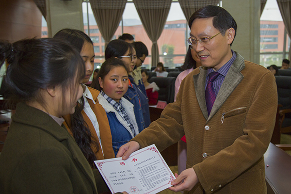 校长王成端为新聘学生信息员代表颁发聘书后讲话。他充分肯定学生信息员在学校民主管理中的重要地位和作用,作为教学一线的体验者、校内外实践的参与者,学生信息员在学校“教、学、管”等方面反馈的信息,对学校改进人才培养工作、改善学校管理具有重要价值。他强调,学生信息员要将责任心摆在首位,增强信息反馈的真实性、提高信息反馈的质量。评估处及相关职能部门要认真对待学生信息员反馈的信息,做到及时汇总、反馈和整改,整改情况要通过《督评简报》予以通报,将学生信息员工作做实、做细。同时,各学院要加大对学生信息员的奖励力度,充分调动学生信息员工作的积极性和主动性。
