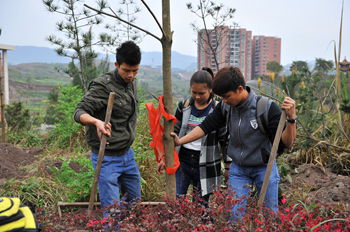 3月24日上午,数学与财经学院20名老挝留学生与学校领导共同在学校凤翔山顶植下了一片象征两国友谊的“友谊林”。