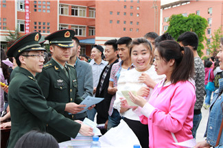 仪式结束后,市、区征兵办公室现场设立征兵政策咨询台,向大学生发放征兵宣传资料,为大学生解难释疑。