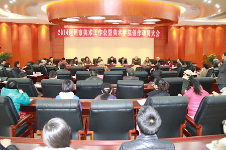 达州市美协主席龙飞传达了四川省美术工作会议精神并做了2014年全市美术工作安排,达州市美协副秘书长张力做了2013年全市美术工作总结报告。