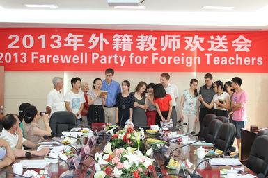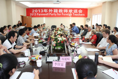 6月7日下午,学校在莲湖校区行政楼举行2013年外籍教师欢送会。副校级调研员成良臣和相关部门负责人及学生代表参加此次活动,国际交流合作处处长余文盛主持欢送仪式。