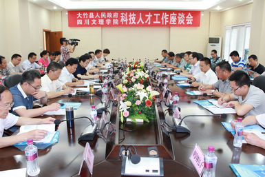 6月14日上午,大竹县科技局及大竹县科技型企业负责人在副县长马国祥的带领下,来开元官网商谈科技型人才培养计划并现场选聘人才。副校长王洪辉主持座谈会。