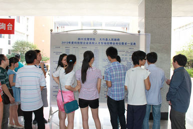 据悉,此次前来参加招聘会的大竹企业共有9家,提供包括产品研发、企业管理、文秘、会计等在内的180多个工作岗位,涉及包括电子信息工程技术、化学、财务管理、汉语言文学、市场营销等专业。招聘会现场,广大毕业生纷纷前来投递简历和填写就业意向,不少企业纷纷表示,此次招聘取得了较满意的效果。笔者从学校招就处获悉,当天140余名毕业生与参会企业达成了就业意向。